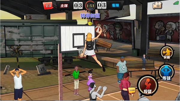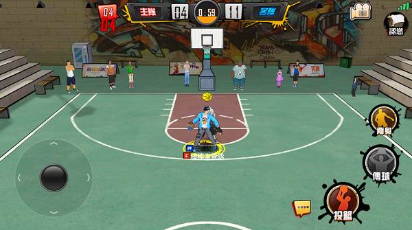 游戏采用无锁定摇杆+按键的操作方式,能通过组合按键,触发各种街头篮球的技巧动作。