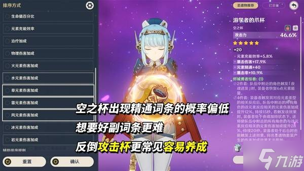 个人建议,空之杯的主词条种类太多,精通杯获取概率偏低,同时还想要好词条那就更难了!因此冻梨自身是选择精通沙+攻击杯,更容易配出好的副词条来。