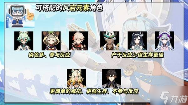 岩元素角色:其实可选不多,也就希诺宁或钟离,提供减抗与生存,但能选情况下冻梨更倾向于风元素角色,可参与反应多一点伤害。