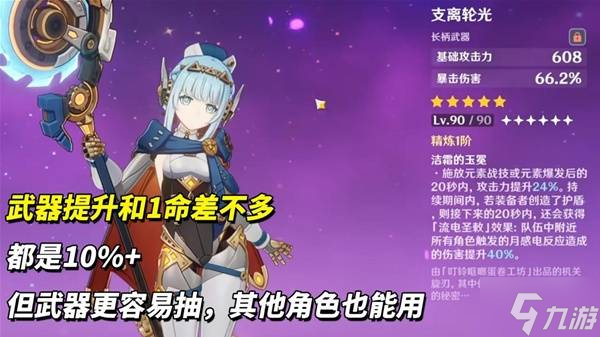 其中1命与武器提升都在10%+,既然如此,冻梨会优先考虑所需抽取期望更低的武器,同时攻暴伤属性也能给其他角色当专武下位替代。
