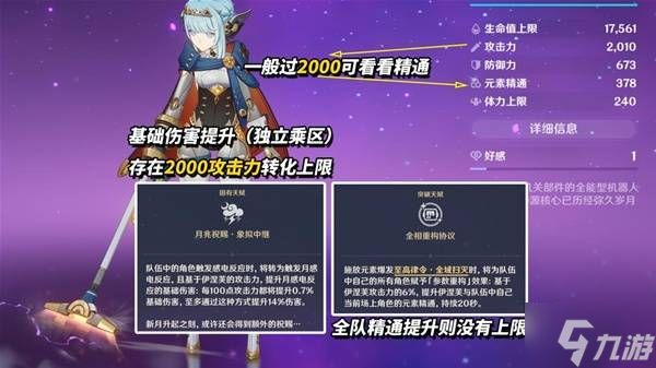 一般来说60%伤害来自于伊涅芙,第二角色则贡献30%,因此其他角色可视自身是否有精通有效/额外转化再决定要不要堆精通。若是强行堆对角色无效的精通,最终伤害其实并不会比你正常配装高多少~