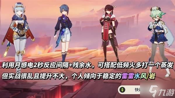 减抗对月感电的伤害提升明显,在队伍内尽可能搭配相关角色,可显著提高你的DPS,推荐【伊涅芙+雷+水+风/岩】元素构成。