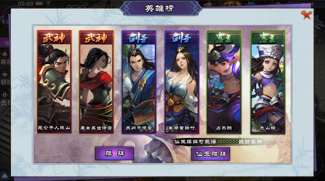 江湖纷争,英雄辈出,苏州城里有英雄榜,拜见英雄,可给大量经验,88仙玉拜见英雄,获得300万经验。每天仅限一次仙玉拜见,英雄不是你想拜就拜的哦。