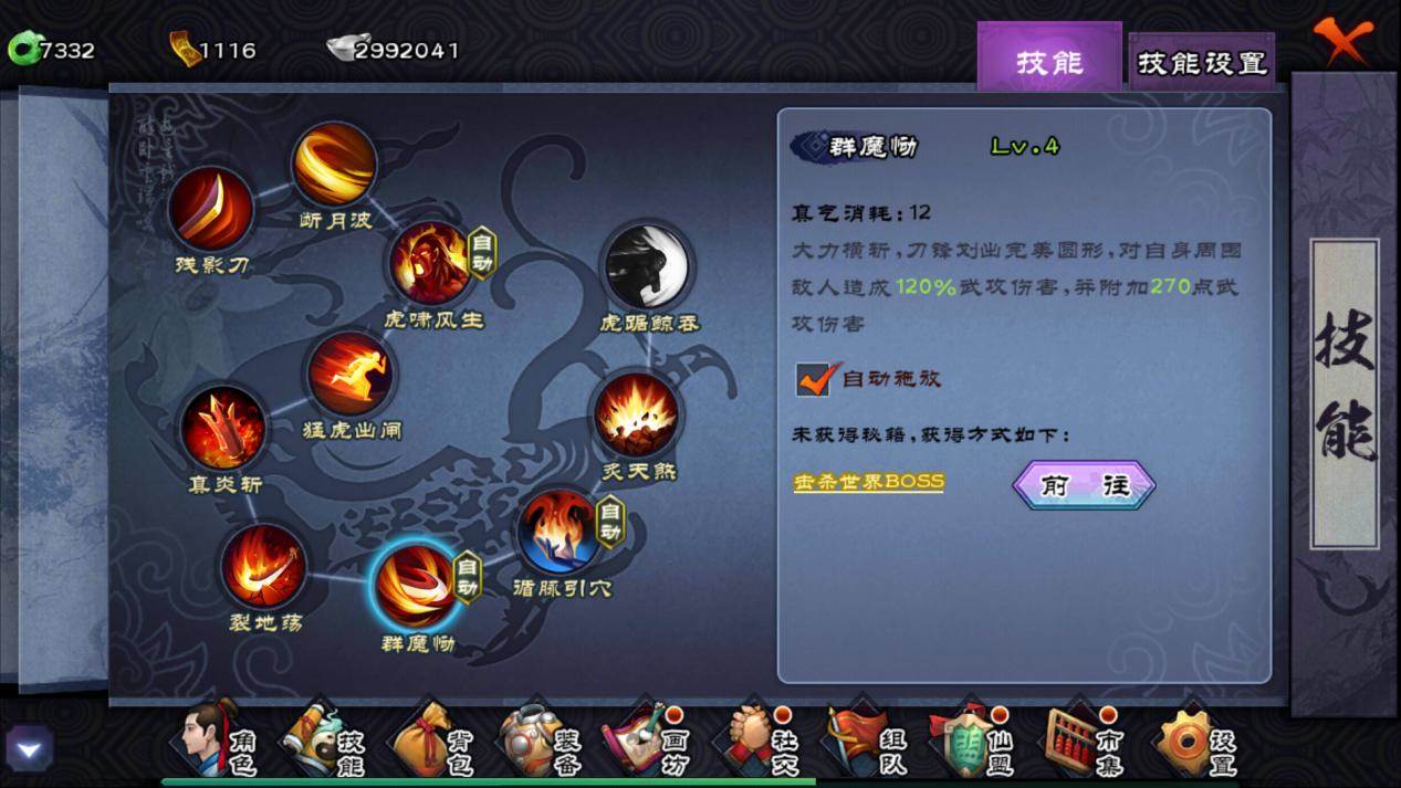 豪侠的主要群攻技能,能对周围的最多五个敌人造成伤害,挂机必备。
