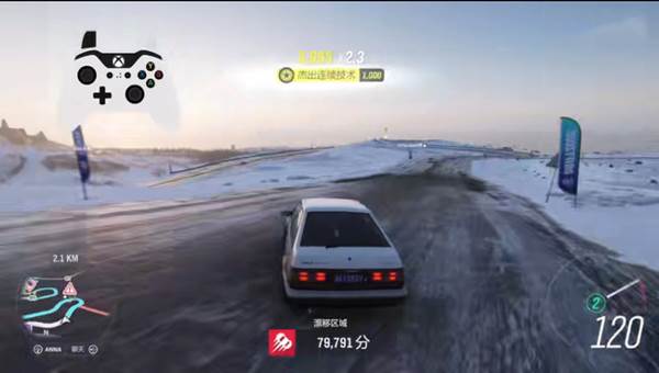 2、按住油门,同时轻点刹车。游戏里能够比较稳的控制方向,一般不会侧滑。要注意点刹车时不要一直按死,一是容易失控,二是容易减速过度。应该轻点后立即松开,如果还需要进一步降速就反复轻点。这样过弯基本可以在稳的基础上保证速度,而过弯后加速也比较及时。