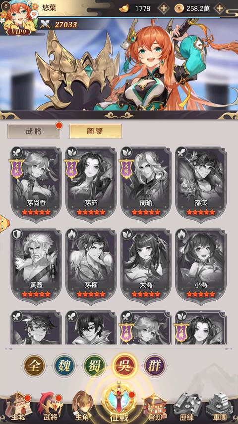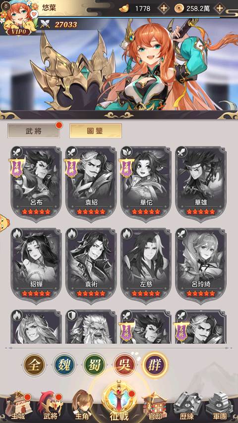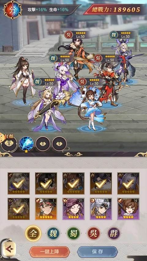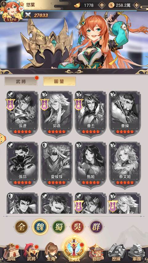 不过在培养武将方面跟其他同类型的游戏差不多,除了抽角色和收集材料帮武将升等突破后,就没什么好做了。不过因为开服时期官方送得蛮大方,玩家可以好快的就抽到5只5星角色,加上推关奖励送的好用奶妈「蔡文姬」就可以组成一队开荒队伍了,而且在刚开服官方送得一大堆资源,可以很快地把角色升到5﹑60等左右,就算是无氪玩家,也可以在前期轻松体验一番碾压敌人的爽快感。