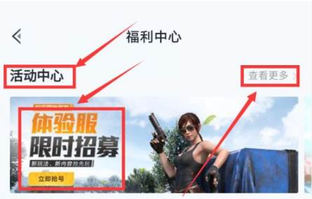 打开福利中心后,找到活动中心——体验服限时招募并点击进入(如果在该页面找到不到,就点击查看更多)