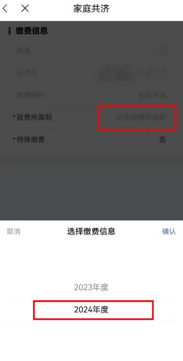 2.绑定完成后,在“账户缴费”→“居民医保”,选择需要代缴的家庭成员及费款所属期(2025年度),完成缴费操作。
