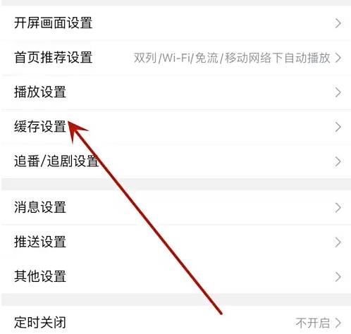 打开缓存设置的界面点击“清理缓存的类型”选项;