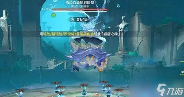 除了月感电专属怪,还有月绽放专属怪物。最典型的就是飞天螃蟹——蟹沙皇。它会周期性召唤种子,种子被草种子命中后会被激活,对蟹沙皇造成非常可观的伤害。