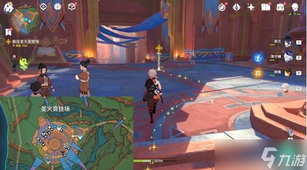 3、跟随任务指引传送至圣火竞技场锚点,向着东北方走触发剧情。
