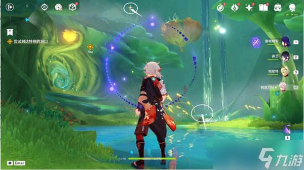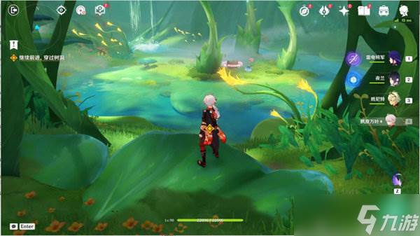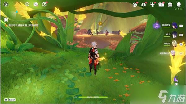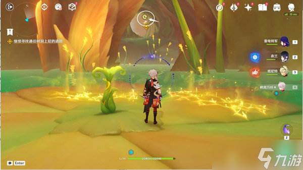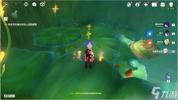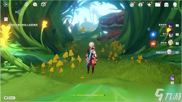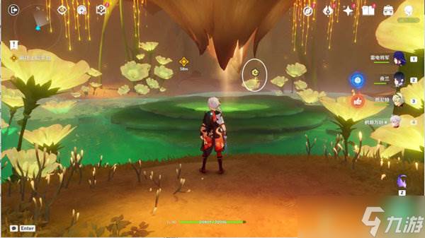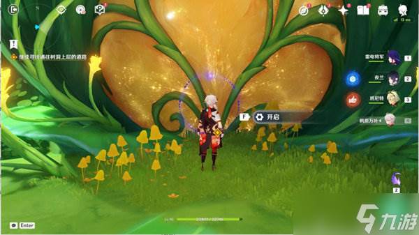 3、秘境中会有弹弹菇,可以站在上面弹跳起飞。