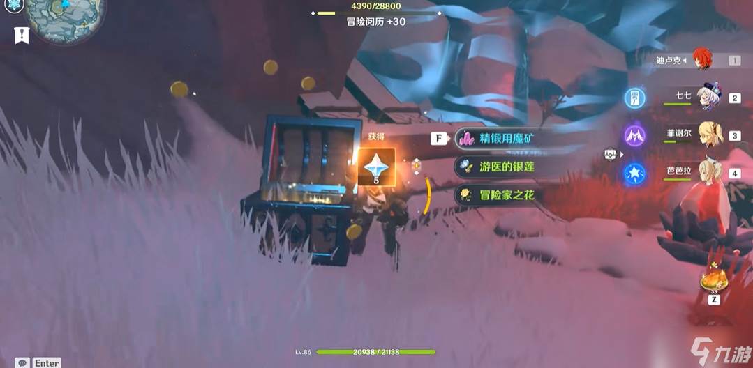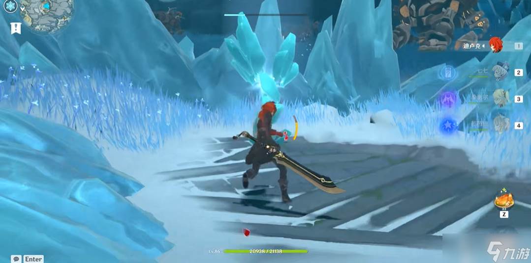 进入地宫后注意下方有个被冰晶封锁的区域,需要先打碎附近的深赤之石获取buff,再攻击冰晶才能有效削减其血量。洞里只有三块深赤之石,冰晶无法一次性破坏,这时候需要分两次操作。同时在地宫右侧能找到两个被雪堆掩埋的仙灵,用火元素角色融化雪堆释放仙灵,它们会帮忙打开隐藏的门。