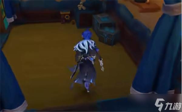2、进入后沿着走廊前行,右侧角落可见堆放的木箱与宝藏堆。