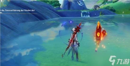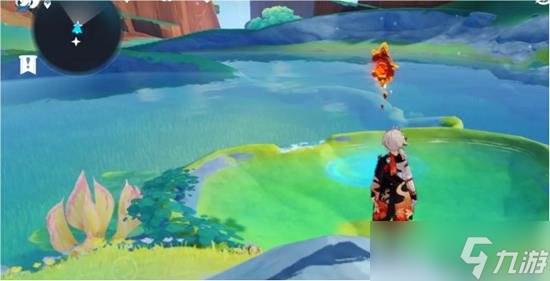 1号火神瞳:在此处池塘水面上,直接从稍高一点的地方飞过来即可拾取;