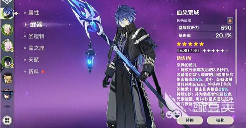 专武“血染荒城”绝对是优先选择的,能完美契合其高爆发的需求;其他可选的武器上,像赤沙之杖、支离轮光等长柄武器也是可以的,如果这些都没有,可以先去选择西风大剑或锻造武器万能钥匙、拾慧铸熔等来进行过渡。