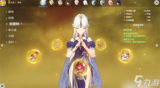 第四套推荐圣遗物是散件,可选择两件套的磐岩加上两件套的角斗或追忆。其中前者可增加凝光百分之十五的岩属性伤害加成,后者则会提高攻击力。这套装备不仅能够提高凝光整体的伤害能力,而且还比较容易获得,日常刷刷世界boss就有概率收集全了。第五套推荐的圣遗物是两件磐岩加上两件宗师,这套可直接增加凝光大招所能造成的元素伤害,能够让其在战场上快速对敌人进行速切。但是需要注意的时候,该套装备对凝光的额外输出手段,例如重击、星璇击等无任何加成。