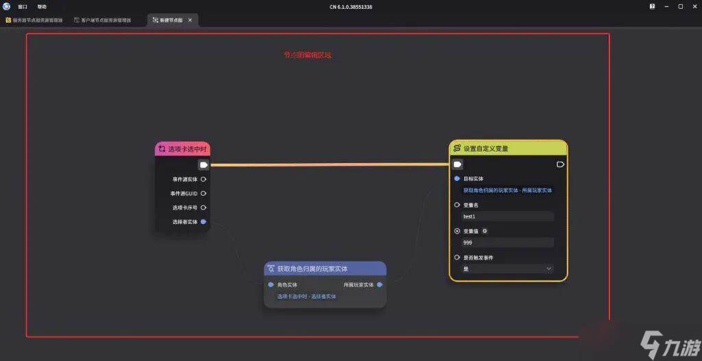 其次编辑器还提供了类似UE引擎的“蓝图功能”,也就是可视化编程脚本,创作者能够凭借直觉将关卡流程中的不同流程以节点图的形式连接,所有功能实现全部封包,因此无需创作者拥有编程能力,大大降低了创作门槛。