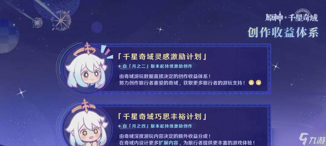 在前瞻直播中官方就提到了一系列激励计划,包括长线的「干星奇域灵感激励计划」,创作者的收益将直接与游玩数据挂钩,而从月之四版本开始,还将推出「干星奇域巧思丰裕计划」能够为玩家提供额外的收益分成。另外除了直接面向创作者提供的收益之外,直播中项目组还暗示会给优秀的UGC地图提供更多流量曝光激励。