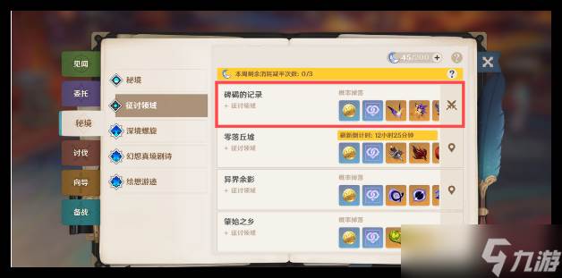 还没过完主线的小伙伴可以点开右上角的“小书”,找到“秘境”→“征讨领域”→“碑碣的记录”副本快速开启哦!(不过还是推荐先过主线再来,以防剧透哦!)