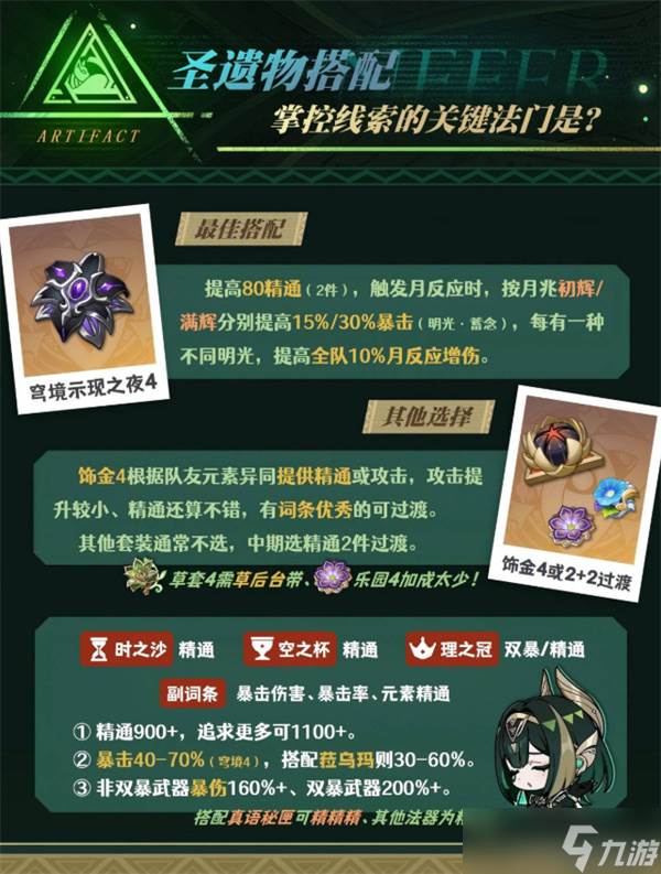 《原神》月之二版本新角色奈芙尔是以“幻戏·月绽放”输出为核心机制的角色,主要依赖精通与暴击属性来提升整体爆发力。若想最大化输出表现,圣遗物的选择至关重要。下面小编将带来原神奈芙尔圣遗物选择推荐,希望能够帮助到各位。
