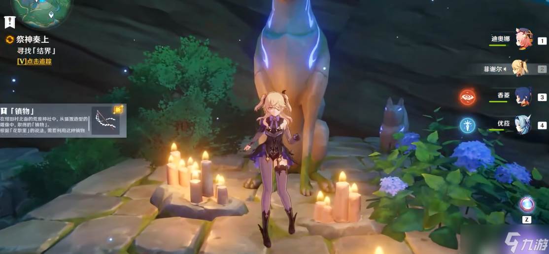 绿色过程需要分步骤完成多个机关互动。与三个谜样的人影各对话两次,让她们汇聚在狐狸雕像处是重要前置条件。随后使用小道具留念镜观察特殊的地狐雕像,可以看到过去发生的影像。对天狐雕像念出特定言灵后,可获得关键道具镇物。这些步骤需要严格按照任务指引执行,任何环节出错都可能导致无法继续。