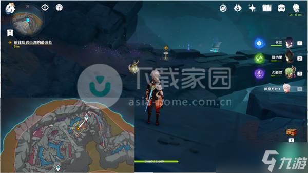 1、传送到层岩巨渊·地下矿区,朝着最深处走过去。