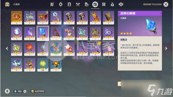 2、打开背包,装备上流明石触媒。
