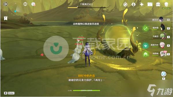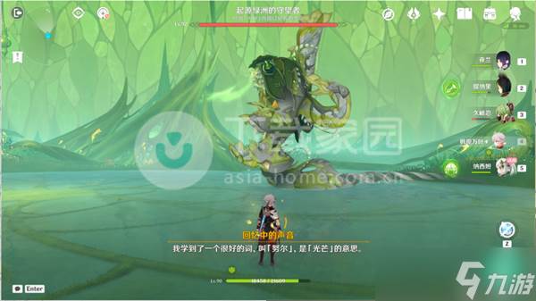 9、来到秘境中,和纳西妲、蕈兽对话。