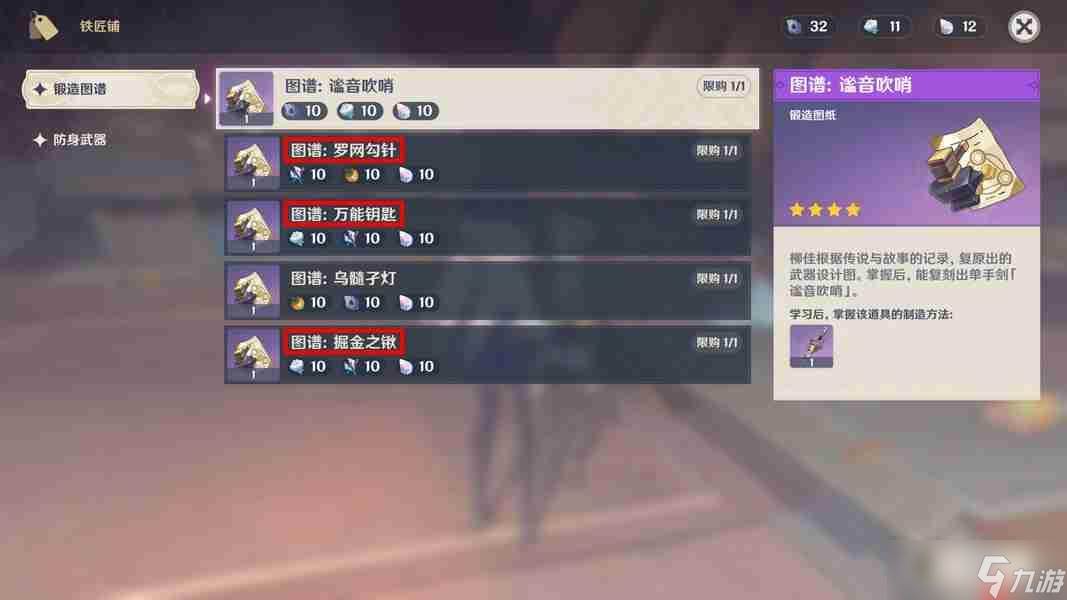 可用于挪德卡莱铁匠铺换取武器锻造图谱