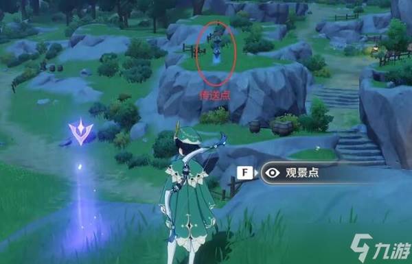 蒙德城外传送点向右上方走,位于能够眺望蒙德城的山崖上;
