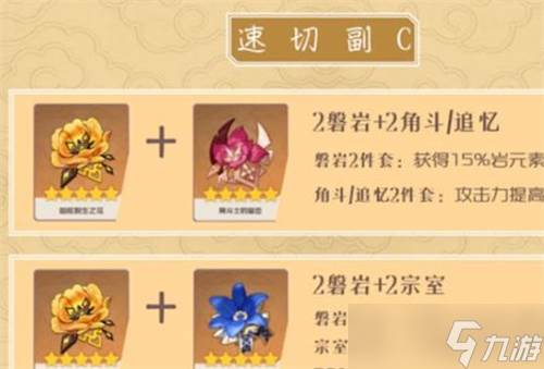 解析:2磐岩+2角斗/追忆是比较通用的,不管是驻场还是速切,都很契合,推荐优先选择。