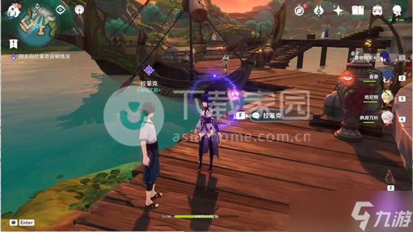 1、传送到须弥酒馆,往码头走,跟拉菲克对话接取任务。