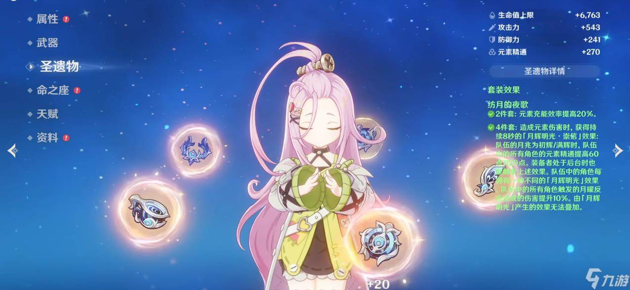 了解完爱诺的定位,接下来就是重中之重 —— 圣遗物搭配。这里给大家推荐三套毕业套装,强度直接拉满,适配不同玩法,新手闭眼抄作业就行!