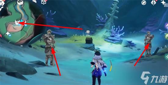 2、第一个,首先来到这个传送点,然后向后走就可以看到这个守卫。