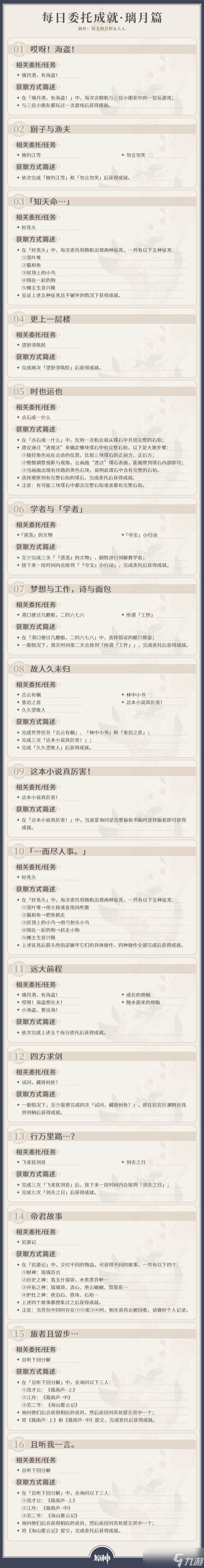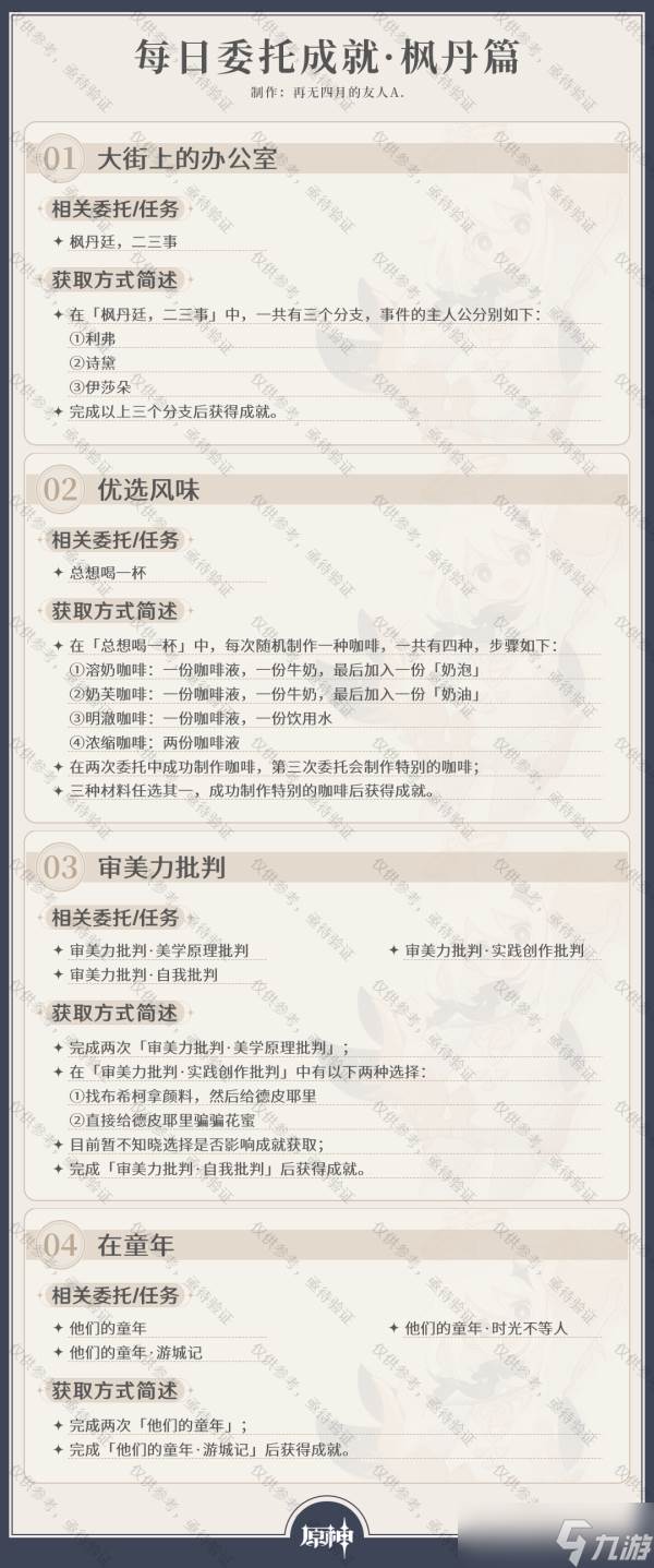 原神原神·成就丨截至V4.0,每日委托成就一图流汇总如下: