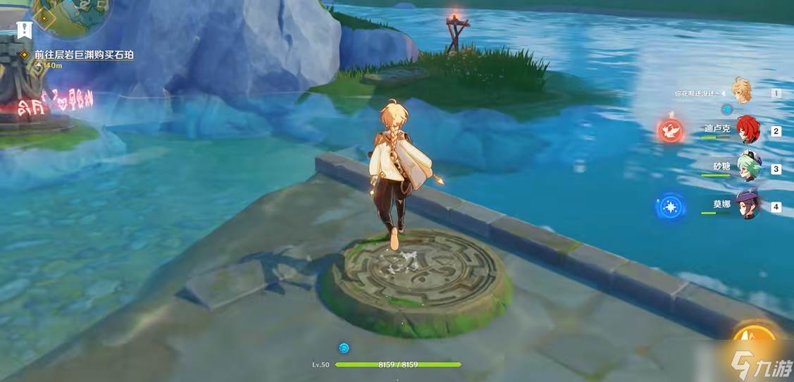 第四处图腾的解谜流程最为繁琐,涉及三种元素配合。玩家首先需用风元素攻击水边的风车草使其旋转,随后迅速用冰元素搭建通往水中图腾的路径,最后在10秒内用岩元素激活图腾。若超时需重新触发风车草。此处对操作节奏和角色切换有较高要求,建议提前规划好行动路线。