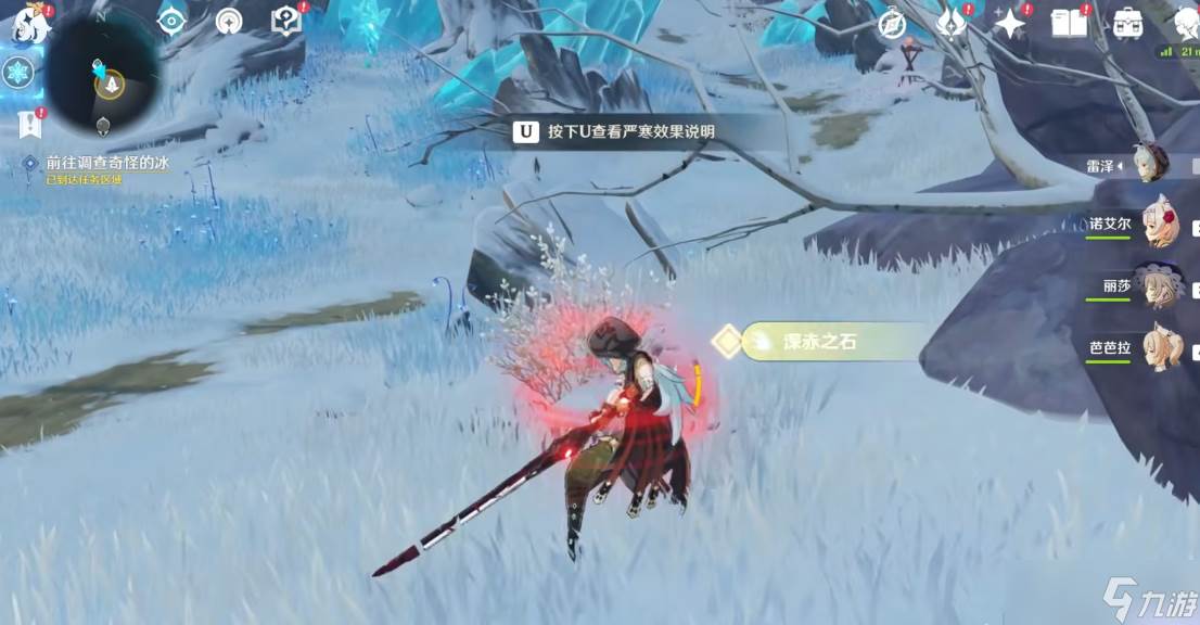 奇怪的冰是玩家在探索地图时可能遇到的一种特殊障碍物。要解决这一问题,首先需要明确奇怪的冰无法通过常规方式破坏,而是需要借助特定的游戏机制——深赤之石。玩家需要在冰湖附近的区域寻找散落的深赤之石,每次拾取后可以暂时获得击碎冰层的能力,但每次只能对冰层造成部分伤害,因此需要重复多次操作才能完全清除障碍。深赤之石的位置通常隐藏在冰窟窿或洞口附近,需要仔细探索周围环境才能发现。