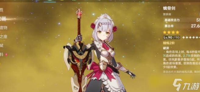这把武器提供的暴击率属性十分实用,由于诺艾尔的盾,在不受伤的情形下,武器特效也不会丢失层数,可以说是与角色机制十分契合的武器。