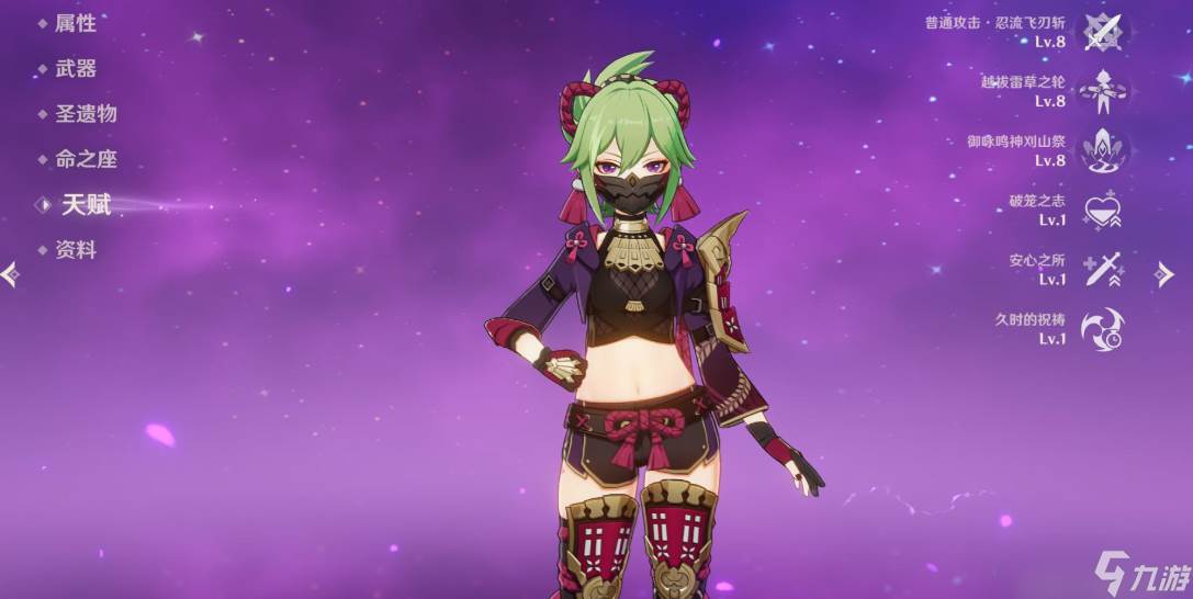 久岐忍的优势在于加血不依赖大招,还有一定的后台挂雷能力,零命时战技的真空期只有三秒钟,解锁二命后就能达成无缝循环,可以配合优菈兼顾加血和超导,也能配合砂糖武装兼顾治疗和挂雷。久岐忍的普攻最多四段连招,一共有四次攻击判定,重击跟其他单手剑角色差不多,消耗二十点体力向前方进行两次斩击,有一定的削韧击飞效果。由于久岐忍的定位是辅助角色,基本上不会站场输出,因此普攻基本没什么实战价值。