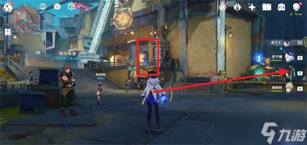 2、传送到锚点后,面向七天神像的方向,先往右前方走。