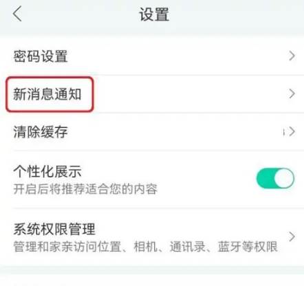进入设置页面,选择【新消息通知】选项,点击进入。