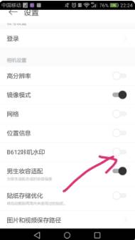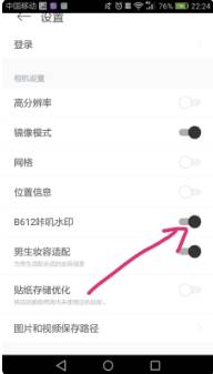 4、“B612咔叽水印”右边按钮是黑色的,点击按钮,会变成灰色,这样照出来的相片就没有B612水印标志了
