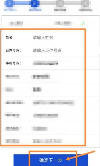 进入页面后,重新输入个人用户信息,姓名,身份证号,手机号码,点击确定下一步即可,如下图所示