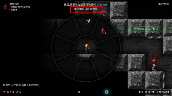 6、选择第一个后角色手中的物品会发生变化,武器会变成药水,再次点击就可以切换回来;