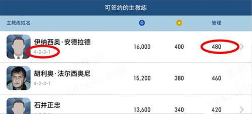 3、球队阵容是不可随意更换的,每个教练自带一套完善的阵容体系,也就是说教练很重要。还有教练的“管理值”越高越能驾驭强力阵容,换言之如果你一套黑卡阵容使用普通教练则会让球队精神降低,状态也会受影响。所以,挑选一个高“管理值”并且阵容令自己满意的教练是不可或缺的。