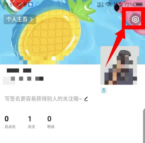打开我的页面后,我们点击顶部的设置选项。如图所示