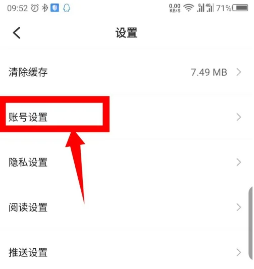 在设置里面,我们再点击账号设置选项。如图所示