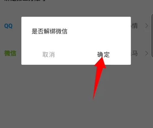 点击后,会弹出是否解绑账号的窗口,点击右边的确定。如图所示