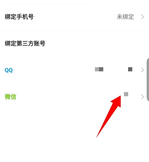 在账号设置的下面,能看到绑定的第三方账号,点击要解绑的账号。如图所示